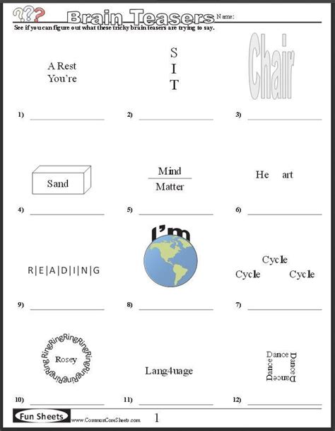 Answer key fun sheets www.commoncoresheets.com see if you can figure out what these tricky brain teasers are trying to. See if you can figure out what these tricky brain teasers are trying to say. Key takeaways of brain teasers.
