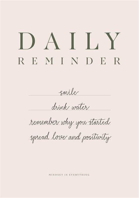 Daily Reminders - Learn how to condition your mind with positive thinking and achieve your goals with daily reminders. Before you throw your hands up and call it quits… read these positive. Find inspirational and motivational quotes, images, and mantras to start your day with positivity and happiness. Any time you feel like you’ve strayed from your path or want to give up,.